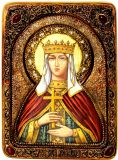Инкрустированная Живописная икона Святая Мученица Людмила Чешская (21*29 см, Россия) на натуральном кипарисе в подарочной коробке