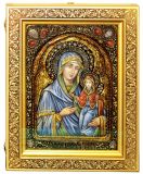 Икона написана вручную на натуральной деревянной доске, изготовленной из массива сакрального кипариса. Для написания образа использованы специальные фронтажные грунты, выравнивающие лаки и темперные краски. Венец и поля иконы вручную украшены рельефным орнаментом и натуральным жемчугом или полудрагоценными камнями.