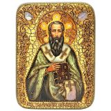 Инкрустированная икона Святитель Василий Великий (15*20 см, Россия) на натуральном мореном дубе в подарочной коробке