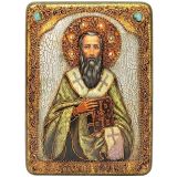 Инкрустированная икона Святитель Василий Великий (21*29 см, Россия) на натуральном мореном дубе в подарочной коробке