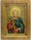 Инкрустированная живописная икона Святой Благоверный князь Вячеслав Чешский (29*42 см, Россия) на натуральном кипарисе в подарочной коробке