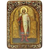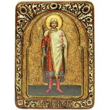 Инкрустированная Живописная икона Святой благоверный князь Борис (21*29 см, Россия) на натуральном кипарисе, в подарочной коробке