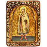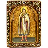 Инкрустированная Живописная икона Святой благоверный князь Глеб (21*29 см, Россия) на натуральном мореном дубе в подарочной коробке
