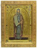 Инкрустированная живописная икона Святой равноапостольный Кирилл Философ (29*42 см, Россия) на натуральном мореном дубе в подарочной коробке