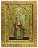 Инкрустированная живописная икона Святой равноапостольный Мефодий Моравский (29*42 см, Россия) на натуральном кипарисе в подарочной коробке