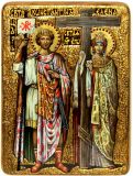 Инкрустированная Живописная икона Святые равноапостольные Константин и Елена (21*29 см, Россия) на сакральном кипарисе в подарочной коробке