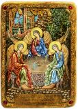 Инкрустированная Живописная икона Троица (29*42 см, Россия) на натуральном кипарисе в подарочной коробке