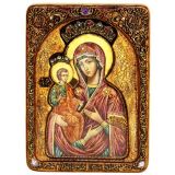 Инкрустированная Живописная икона Образ Божией Матери Троеручица (21*29 см, Россия) на натуральном кипарисе в подарочной коробке