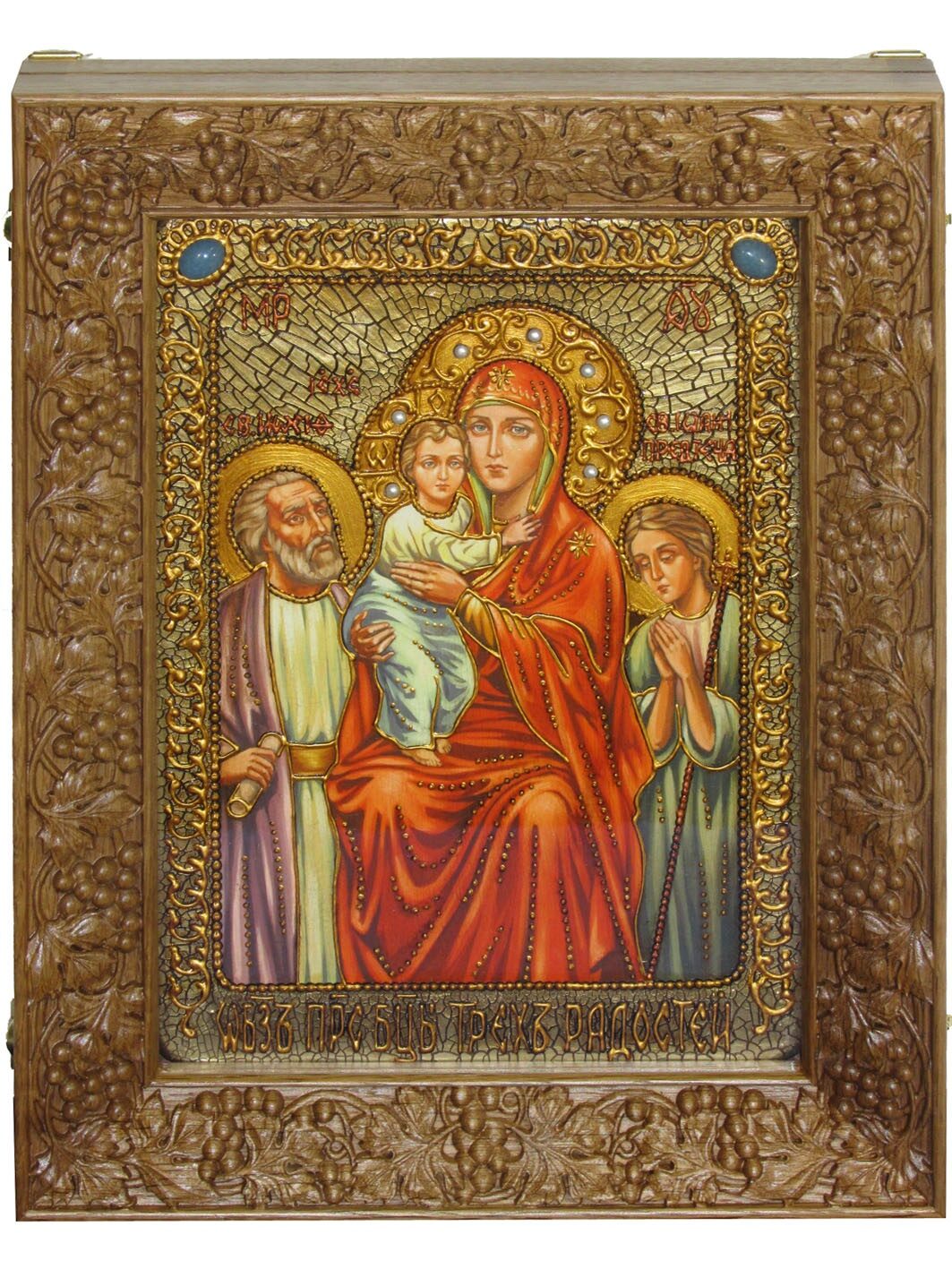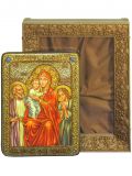 Основное назначение киота в возможности повесить икону. Дело в том, что доска, на которой написана икона, называется "телом иконы" и по канонам не может подвергаться механическим воздействиям. Т.е. ни прикрепить подвес на оборотную сторону, ни тем более сделать отверстия для гвоздя или шурупа в теле иконы нельзя. Икона сама по себе может только ставиться. Для того, чтобы иметь возможность повесить икону нужен киот. Данный киот предназначен для аналойных икон, размерами 21*29 см. Внешние размеры киота составляют 37*29 см. Рельефный орнамент рамки органично дополняет узор полей иконы. Упаковка: транспортная картонная коробка.