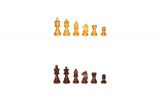 - Фигуры выточены вручную: светлые из самшита, а темные из розового дерева. Высота короля - 1,75 дюйма (около 4,5 см)