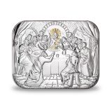 | Исполнение | Серебро 999* - гальванопластика, основа - металлокомпозит, дерево, многослойная шелкография, лак |