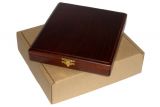 Весь набор упакован в полированную деревянную шкатулку из березы, тонированной под орех.