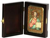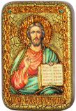 Инкрустированная настольная икона Господь Вседержитель (10*15 см, Россия) на натуральном мореном дубе, в подарочной коробке