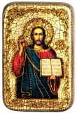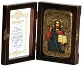 Настольная икона Господа Иисуса Христа (10*15 см, Россия), на мореном дубе, инкрустированная, в подарочной коробке