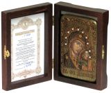 Настольная икона "Образ Казанской Божией Матери" на мореном дубе