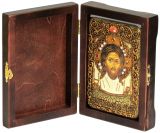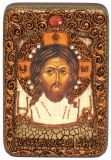 Настольная икона "Спас Нерукотворный" (10*15 см, Россия) на натуральном мореном дубе, в подарочной коробке