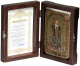 Инкрустированная икона Святитель и чудотворец Ермоген, патриарх Московский (10*15 см, Россия) на мореном дубе, в подарочной коробке