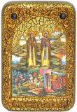 Настольная икона "Святые преподобные Александр (Пересвет) и Андрей (Ослябя) Радонежские" на мореном дубе