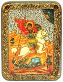 Инкрустированная подарочная икона Чудо святого Георгия о змие (15*20 см, Россия) на натуральном мореном дубе в подарочной коробке