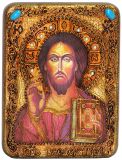 Инкрустированная подарочная икона Господь Вседержитель (15*20 см, Россия) на натуральном мореном дубе в подарочной коробке