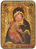 Инкрустированная подарочная икона Образ Владимирской Божьей Матери на мореном дубе (15*20 см, Россия)