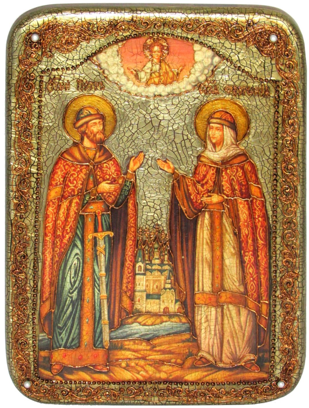 Подарочная икона "Петр и Февронья" на мореном дубе