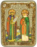 Инкрустированная рукописная икона Петр и Февронья (15*20 см, Россия) на натуральном мореном дубе в подарочной коробке