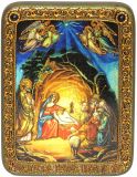 Подарочная икона "Рождество Господа Бога и Спаса нашего Иисуса Христа" на мореном дубе (15*20 см, Россия)