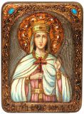 Инкрустированная икона Святая благоверная княгиня Елена Сербская (21*29 см, Россия) на натуральном мореном дубе в подарочной коробке