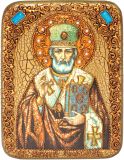 Инкрустированная икона Святитель Николай, архиепископ Мир Ликийский (Мирликийский) (15*20 см, Россия) на натуральном мореном дубе в подарочной коробке