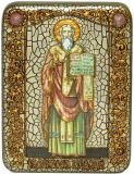 Инкрустированная икона Святой равноапостольный Мефодий Моравский (15*20 см, Россия) на натуральном мореном дубе, в подарочной коробке