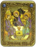 Инкрустированная подарочная икона Троица (15*20 см, Россия) на натуральном мореном дубе в подарочной коробке