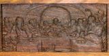 Наименование: Полка для икон одноярусная угловая "Тайная вечерия" из мореного дуба Размер: 40 х 40 х 10 см Это первая полка для икон в нашем ассортименте. Лицевую панель её украшает резное изображение Тайной вечерии с предстоящими Архангелами Михаилом и Гавриилом. На боковых сторонах вырезан геометрический орнамент, продолжающий орнаментальную подложку под изображениями Архангелов. Внутреннее пространтво имеет размер 35,5*35,5 см. Бруски жесткости, прилегающие к стенам, скруглены в точке прилегания к углу комнаты для избегания повреждения обоев зачастую неплотно вклеенных в углы. На обеих брусках размещены по два подвеса, что обеспечивает надежное крепление к стенкам. Лицевая панель и бруски обеспечивающие жесткость выполнены из массива мореного скального дуба и покрыты льняным маслом, что сохраняет видимость натурального дерева, её рисунок, фактуру и матовость, но предохраняет древесину от излишней влаги. Помимо очевидных достоинств такого сочетания материала и покрытия это позволяет в случае появления царапин, сколов и т.п. в ходе использования полки избежать лишних проблем с её ремонтом: достаточно приобрести льняное масло (оно продается как в аптеках так и в продуктовых магазинах) и ваткой или поролоном нанести на поврежденный участок, - и царапина приобретет тот же цвет, что и окружающие её неповрежденные части. Каждая полка упакована в транспортную коробку из бурого картона с ручкой, облегчающей переноску. Описание:
