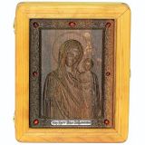 резная икона в подарок маме Казанская икона Божией Матери на натуральном мореном дубе, инкрустированная янтарем (18*23 см, Россия)