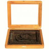 Икона выполнена из массива мореного дуба, покрыта льняным маслом и украшена янтарем. Киот выполнен из натуральной мореной березы, покрытой маслом.