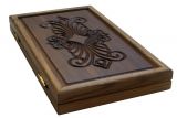 Одна из самых новых досок дорожного размера. Лицевая и оборотная сторона доски выполнены из массива мореного дуба, а каркас - из европейского дуба, не подвергавшегося морению. Эта доска соответствует всем основным запросам любителей игры в нарды:
