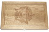 внешней стороны на лицевой филенке вырезан советский орден "Победа". На оборотной филенке вырезана
