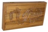 С внешней стороны на лицевой филенке вырезан Дракон. На оборотной филенке вырезана доска для игры в шашки.