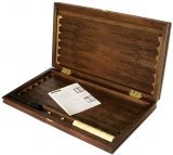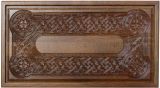 С внешней стороны на лицевой филенке по центру оставленно поле для нанесения логотипа или дарственной надписи. С оборотной стороны филенка с выгравированной доской для игры в шашки.