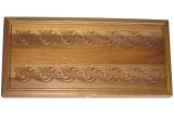 С внешней стороны на лицевой филенке вдоль длинных сторон вырезаны две оригинальные плетенки. Оборотная филенка гладкая.