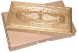 С внешней стороны на лицевой филенке вырезан римский щит. Оборотная филенка гладкая.