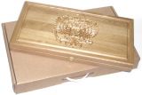 внешней стороны на лицевой филенке по центру вырезан двуглавый орел. Оборотная филенка гладкая.