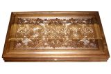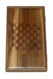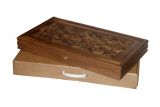 С внешней стороны на лицевой филенке вырезан древний восточный рисунок, на оборотной филенке вырезана доска для игры в шашки.