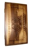 С внешней стороны на лицевой филенке вырезана виньетка в восточном стиле, на оборотной филенке вырезана доска для игры в шашки.