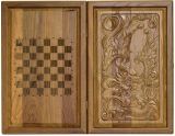 Резные объемные нарды+шашки дорожного размера из массива мореного дуба "Дракон"
