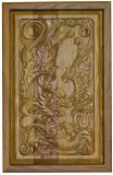 С внешней стороны на лицевой филенке вырезан объемный дракон. На оборотной филенке вырезана доска для игры в шашки.