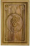 внешней стороны на лицевой филенке вырезан объемный дракон в стиле мортал комбат.