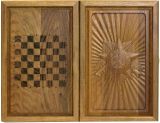 Резные объемные нарды+шашки дорожного размера из массива мореного дуба "Орден Великой Отечественной войны"