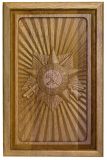 внешней стороны на лицевой филенке вырезан объемный орден Великой Отечественной войны.