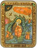 Инкрустированная рукописная икона Пророк Илия Фесфитянин (15*20 см, Россия) на натуральном мореном дубе в подарочной коробке